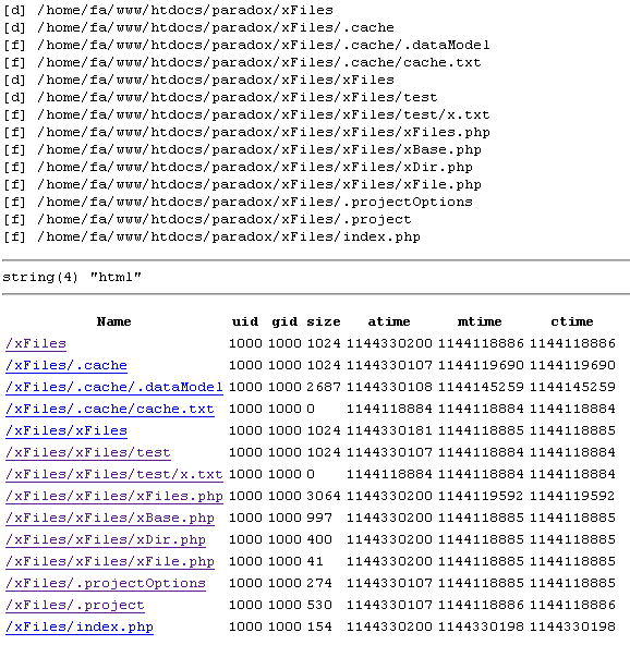 I'd appreciate any comments if I missed anything with similar behaviour (mainly something like Apache's directory index with a few extras like: "ignore by pattern", level of detail, etc) - perhaps even a PEAR class I overlooked?